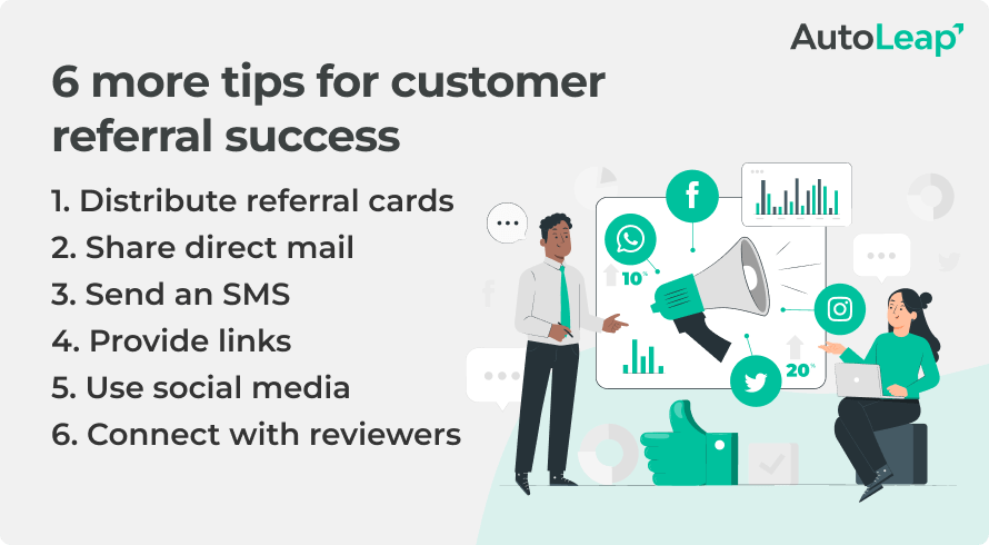 Your social media platforms are great for advertising your referral program and connecting with your community. Create a support group on Facebook where your audience can share reviews, discuss problems, and talk to other customers. This community engagement is a great way to keep your auto shop top of mind for them.