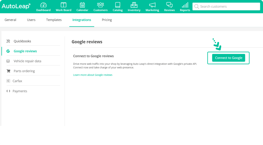 Before you begin receiving reviews, you have to simply link your Google Business account with your AutoLeap account.