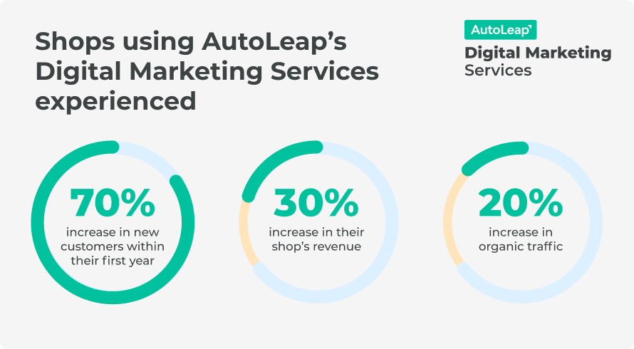 While each shop maintains its own marketing strategy and identity, AutoLeap’s tried and tested digital marketing services have led to the following results for our customers: