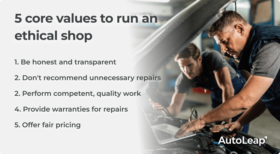 Some key ethical considerations in the auto repair industry include: