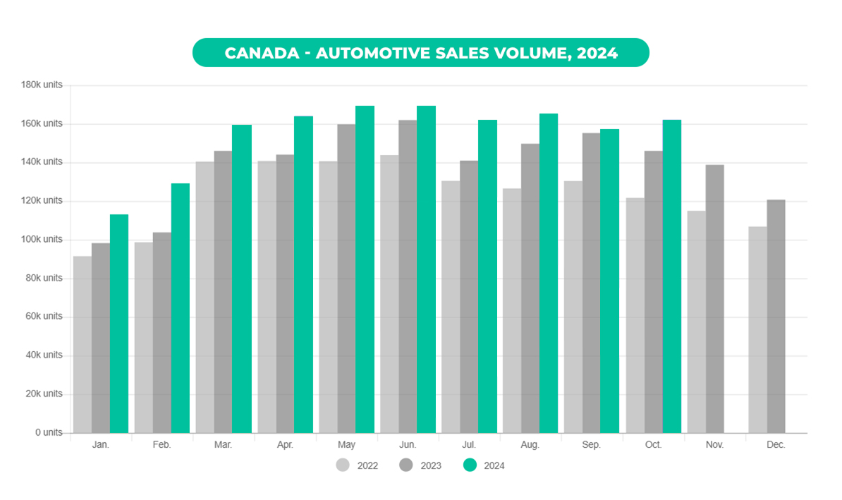 With just two months left in the year, the market is on track to hit an annual total of 1.8 million vehicles sold—a milestone last achieved in 2019. Scotiabank recently estimated 1.78 million sales for 2024 and predicts an even stronger 1.80 million sales in 2025.