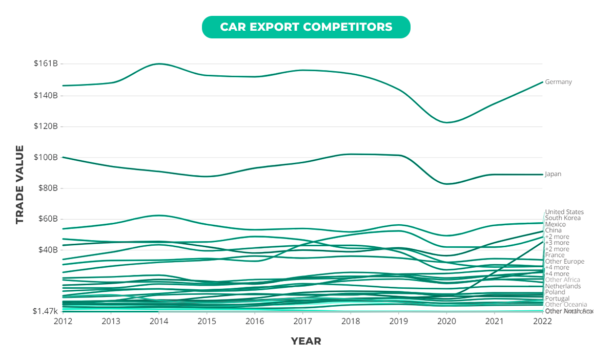 - Japan: Still holding its ground, exporting $89 billion worth of cars, maintaining its competitive position in the global market.