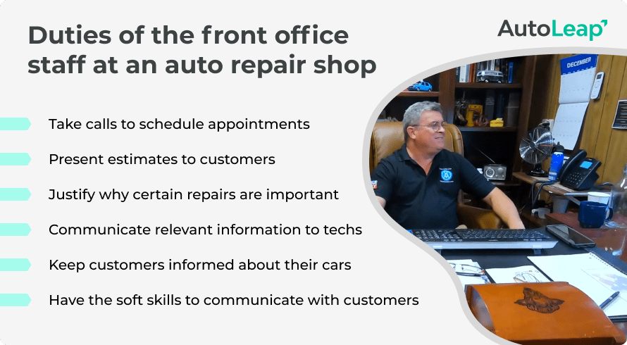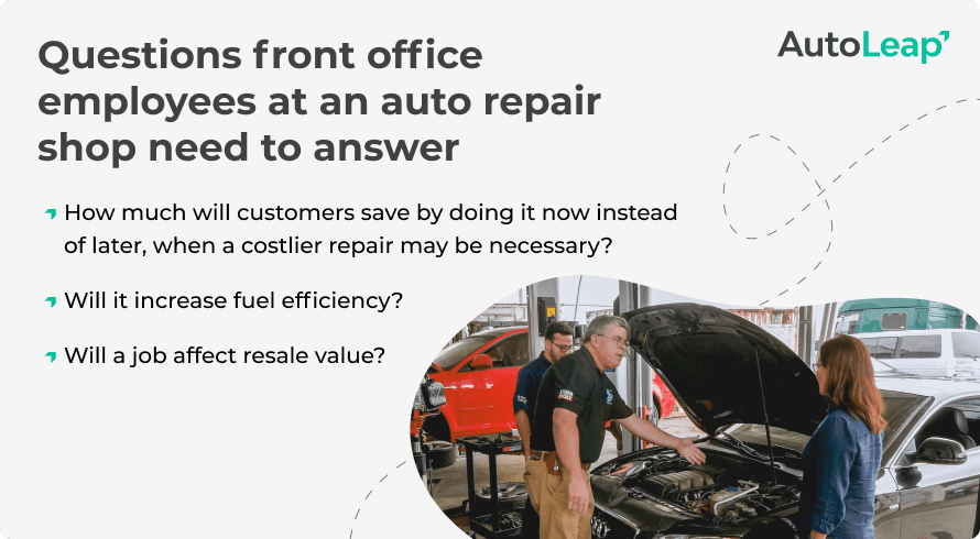- They represent your shop: Your front office acts as a bridge between the customer and the technician and needs to communicate with them effectively. They have to explain repair recommendations to customers in clear, plain, transparent language.