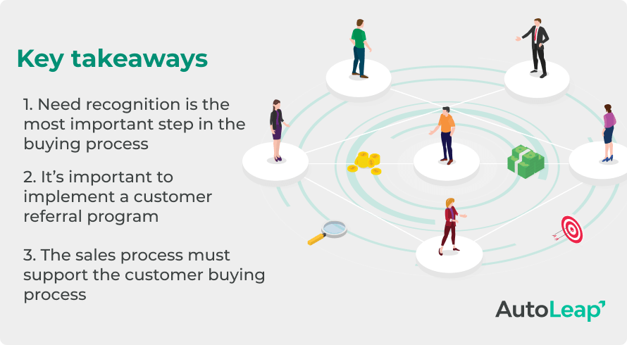 By recognizing the psychology behind the buying process, we can close and delight more customers. With this understanding, you can tailor your sales process to match the step they’re in, whether it requires educating them on the need or sharing options and alternatives.