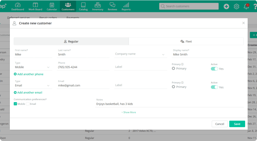AutoLeap’s software helps you create a profile for any new customer who comes in. Here you can enter some of their basic information, such as: