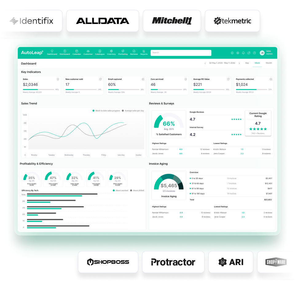 ShopKey mixes shop management with repair info, but the workflow can feel fragmented. AutoLeap keeps everything unified: inspections, invoicing, reminders, and reporting. When comparing AutoLeap reviews vs other auto repair management programs, users consistently highlight its simplicity and speed.