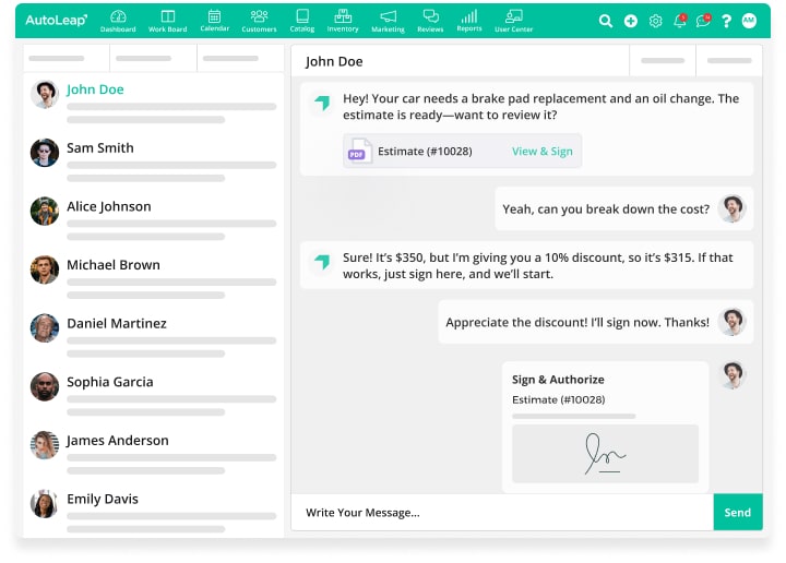 By allowing customers to engage with your shop through their preferred communication channels and automating reminders and follow-ups, AutoLeap keeps them informed and satisfied.