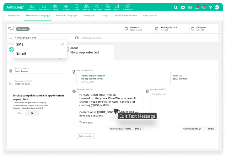AutoLeap’s auto repair shop CRM solution uses real customer data to build targeted campaigns that customers will engage with.
