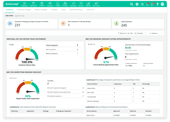 AutoLeap’s CRM helps create and set up, highly targeted marketing campaigns that customers are more likely to engage with. You can also monitor key metrics like click-through rates and conversions to adjust your campaign's performance and strategy.