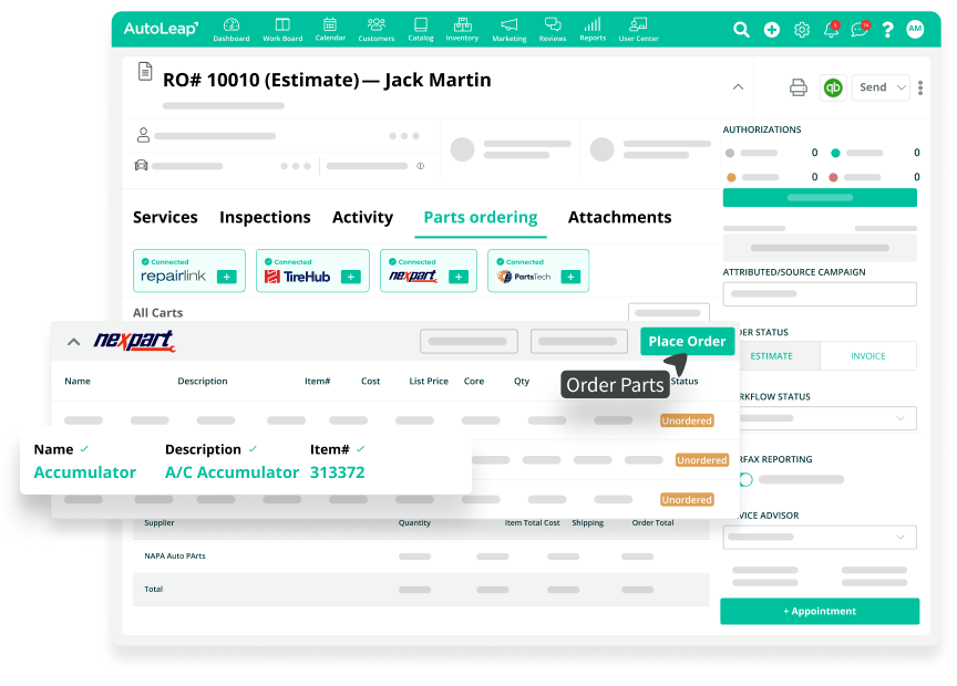 AutoLeap’s parts tracking and automated data logging ensure accuracy from order to delivery.