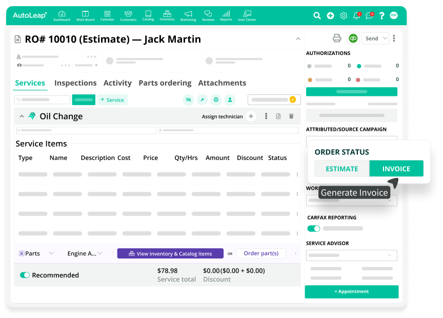 Running a busy shop is tough enough without having to chase late payments or drowning in paperwork. AutoLeap’s auto shop invoice software takes the stress out of billing.